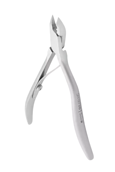 Staleks Pro Smart 80 NS-80-5 to cążki do manicure przeznaczone do precyzyjnej i maksymalnie bezpiecznej pracy. Ich małe 5-milimetrowe ostrza nadają się do bardzo precyzyjnej pracy a ergonomiczny zakrzywiony uchwyt zapobiega zmęczeniu dłoni przy długotrwałej pracy. Długość narzędzia 101 mm.