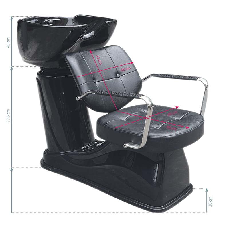 Nowoczesna myjnia fryzjerska marki Gabbiano -połączenie funkjonalności w włoska elegancją. Myjnia wykonana jest z najwyższej jakości materiałów i doskonale wykończona. Wiemy jak ważny jest komfort klienta podczas zabiegów, dlatego specjalna konstrukcja zapewnia klientowi solidne podparcie głowy w czasie mycia. Miękkie i niezwykle wygodne siedzisko pokryte jest wysokiej jakości ekoskórą w kolerze czarnym. Myjnia posiad czarną misę ceramiczną i podłokietniki w kolorze srebrnym. Idealny mebel do nowoczesnych wnętrz.