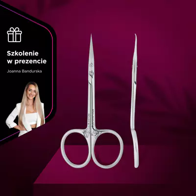 Nożyczki do manicure SX-21/2 mają zakrzywiony kształt rączek, co zapewnia stylistce korzystniejsze i wygodniejsze ułożenie dłoni podczas wycinania skórek. A płynny ruch narzędzia i wysoka twardość metalu gwarantują mega precyzyjne, gładkie i łatwe cięcie naskórka. Ale główną cechą modelu jest wygięcie części roboczej w kształcie haczyka. Taki zakrzywiony i zwężający się kształt końcówek ostrzy tnących powtarza zagłębienie płytki paznokcia, co zapobiega urazom paznokcia i zapewnia lepszy dostęp do pracy ze skórą okołopaznokciową.