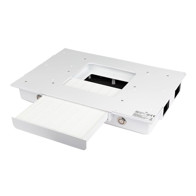 bezpośrednio do specjalnego filtra, który uniemożliwia wydostanie się go na zewnątrz. Kratka wykonana jest z wysokiej jakości plastiku a kasetowy filtr do pyłu specjalnej bibuły filtracyjnej. Opcjonalnie można dokupić filtr z aktywnym węglem,który jest idealnym rozwiązaniem problemu alergenów, pyłów i drobnoustrojów